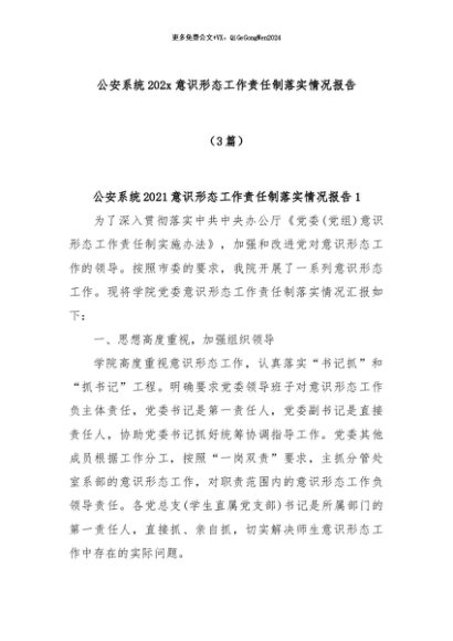【七哥公文】2024年:(3篇)公安系统 202x 意识形态工作责任制落实情况报告+更多免费公文+VX:QiGeGongWen2024