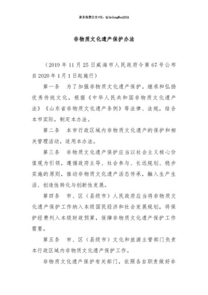 / 【七哥公文】2024年:非物质文化遗产保护办法+更多免费公文+VX:QiGeGongWen2024