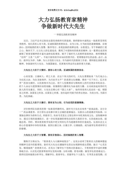 【七哥公文】2024年:2023大力弘扬教育家精神争做新时代大先生PPT大气精美风党员干部积极弘扬教育家精神专题党课课件(讲稿)+更多免费公文+VX:QiGeGongWen2024