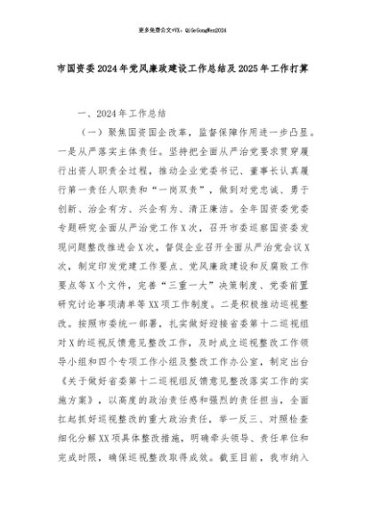 【七哥公文】2024年:市国资委2024年党风廉政建设工作总结及2025年工作打算+更多免费公文+VX:QiGeGongWen2024