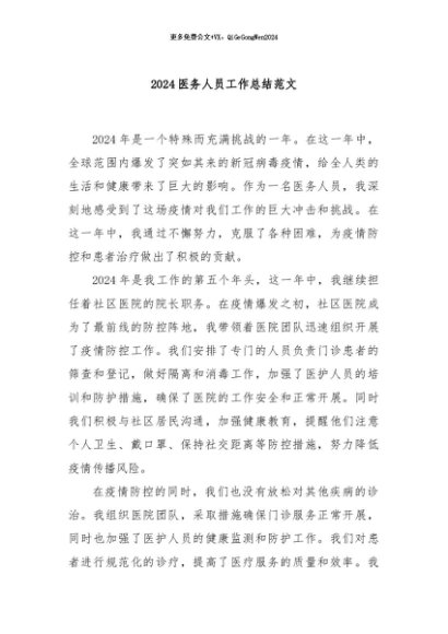 / 【七哥公文】2024年:2024医务人员工作总结范文+更多免费公文+VX:QiGeGongWen2024