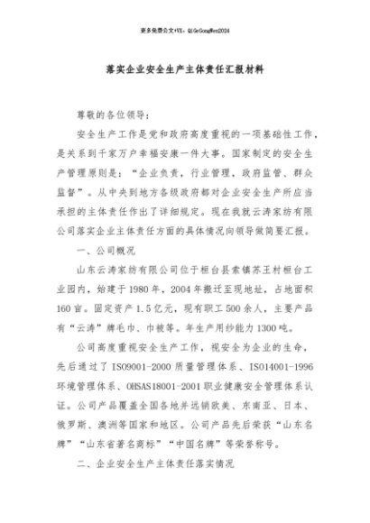 / 【七哥公文】2024年:落实企业安全生产主体责任汇报材料+更多免费公文+VX:QiGeGongWen2024