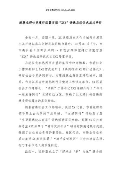 【七哥公文】2024年:新就业群体党建行动暨首届“XXX”评选启动仪式成功举行+更多免费公文+VX:QiGeGongWen2024
