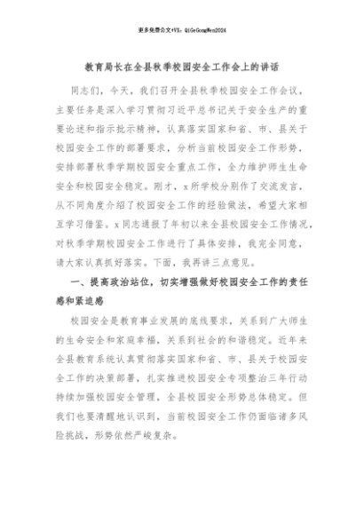 / 【七哥公文】2024年:教育局长在全县秋季校园安全工作会上的讲话+更多免费公文+VX:QiGeGongWen2024