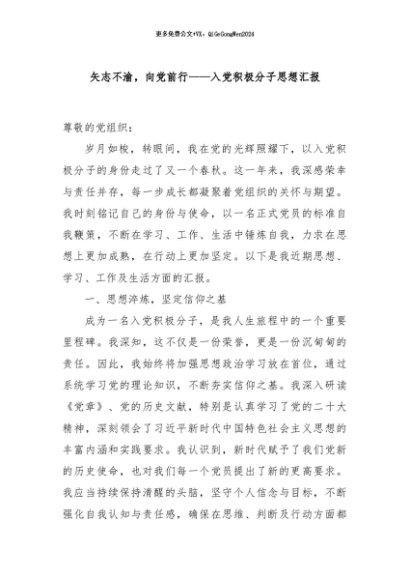 / 【七哥公文】2024年:矢志不渝,向党前行——入党积极分子思想汇报+更多免费公文+VX:QiGeGongWen2024