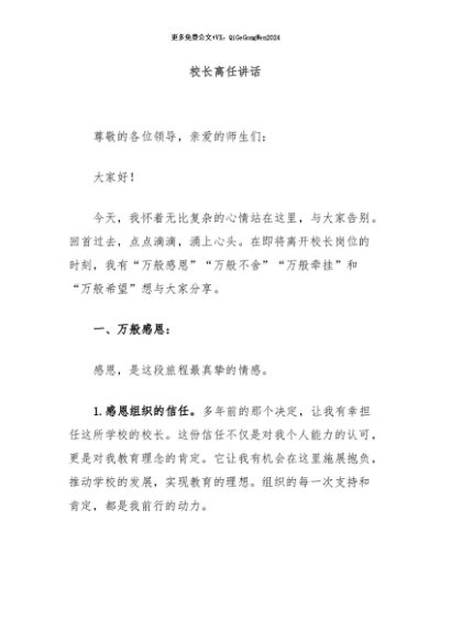 【七哥公文】2024年:校长离任讲话+更多免费公文+VX:QiGeGongWen2024