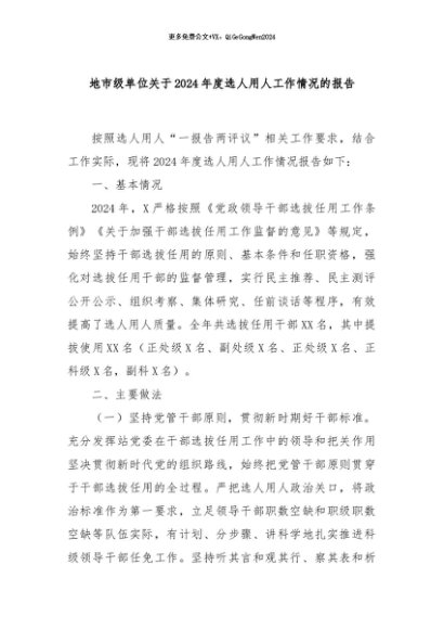 / 【七哥公文】2024年:地市级单位关于2024年度选人用人工作情况的报告+更多免费公文+VX:QiGeGongWen2024
