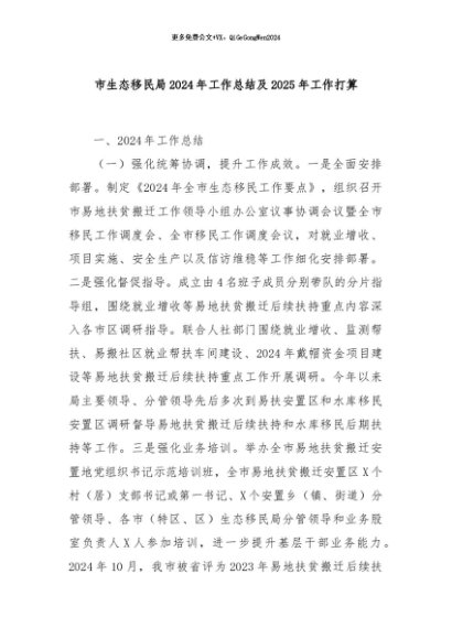 【七哥公文】2024年:市生态移民局2024年工作总结及2025年工作打算+更多免费公文+VX:QiGeGongWen2024