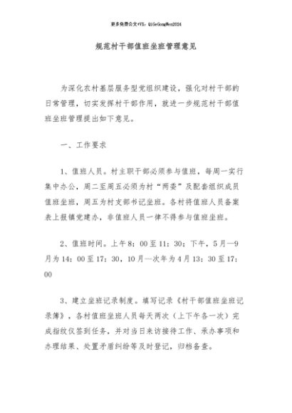 / 【七哥公文】2024年:规范村干部值班坐班管理意见+更多免费公文+VX:QiGeGongWen2024