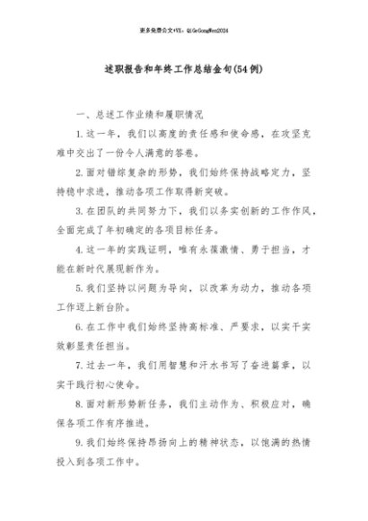 / 【七哥公文】2024年:(54例)述职报告和年终工作总结金句+更多免费公文+VX:QiGeGongWen2024