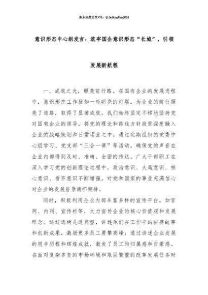 【七哥公文】2024年:意识形态中心组发言:筑牢国企意识形态“长城”,引领发展新航程+更多免费公文+VX:QiGeGongWen2024