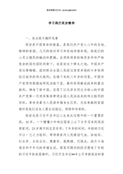 【七哥公文】2024年:学习践行延安精神+更多免费公文+VX:QiGeGongWen2024