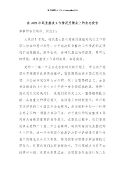 / 【七哥公文】2024年:在2024年巡查整改工作情况反馈会上的表态发言+更多免费公文+VX:QiGeGongWen2024