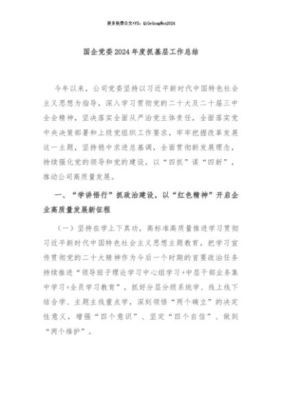 / 【七哥公文】2024年:国企党委2024年度抓基层工作总结+更多免费公文+VX:QiGeGongWen2024