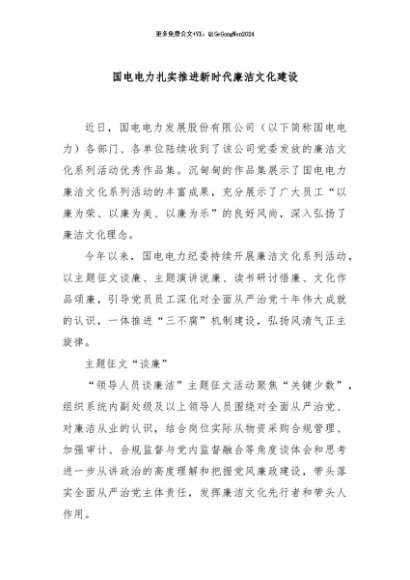 / 【七哥公文】2024年:国电电力扎实推进新时代廉洁文化建设+更多免费公文+VX:QiGeGongWen2024