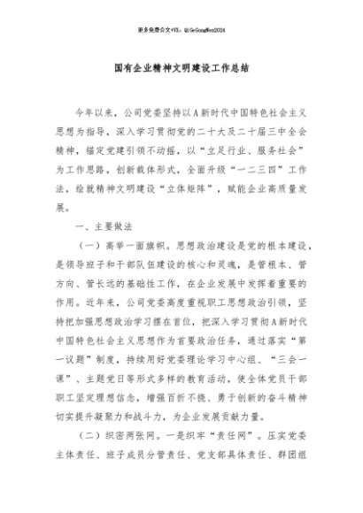 / 【七哥公文】2024年:国有企业精神文明建设工作总结+更多免费公文+VX:QiGeGongWen2024