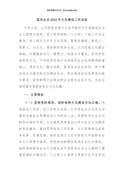 / 【七哥公文】2024年:国有企业2024年文化建设工作总结+更多免费公文+VX:QiGeGongWen2024