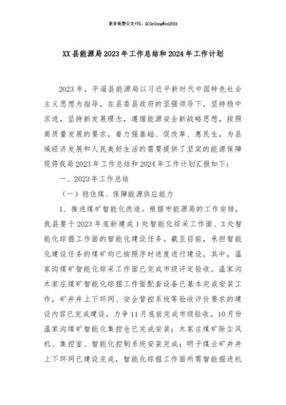 【七哥公文】2024年:XX县能源局 2023年工作总结和2024年工作计划+更多免费公文+VX:QiGeGongWen2024