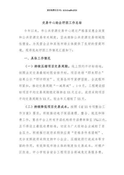 / 【七哥公文】2024年:交易中心助企纾困工作总结+更多免费公文+VX:QiGeGongWen2024