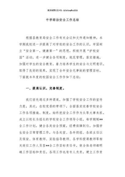/ 【七哥公文】2024年:中学综治安全工作总结+更多免费公文+VX:QiGeGongWen2024