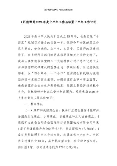 【七哥公文】2024年:X区能源局2024年度上半年工作总结暨下半年工作计划+更多免费公文+VX:QiGeGongWen2024