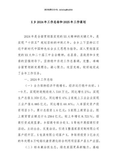 / 【七哥公文】2024年:X乡2024年工作总结和2025年工作谋划+更多免费公文+VX:QiGeGongWen2024