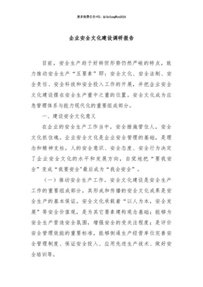 / 【七哥公文】2024年:企业安全文化建设调研报告+更多免费公文+VX:QiGeGongWen2024