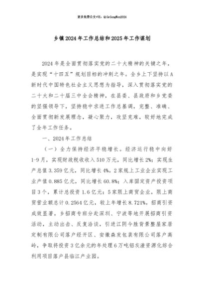 / 【七哥公文】2024年:乡镇2024年工作总结和2025年工作谋划+更多免费公文+VX:QiGeGongWen2024