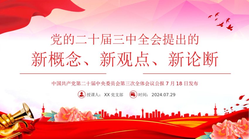 【七哥公文】2024年:2024二十届三中全会提出的新概念新观点新论断PPT党课模板 (1)+更多免费公文+VX:QiGeGongWen2024