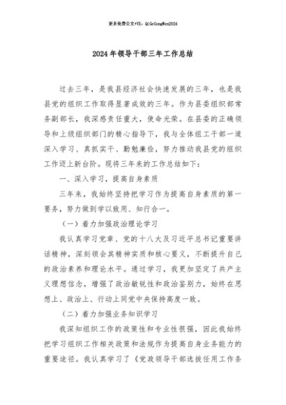 / 【七哥公文】2024年:2024年领导干部三年工作总结+更多免费公文+VX:QiGeGongWen2024