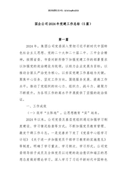 / 【七哥公文】2024年:(5篇)国企公司2024年党建工作总结+更多免费公文+VX:QiGeGongWen2024