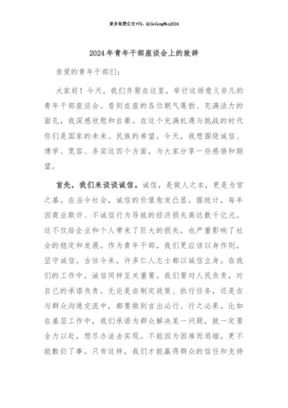 / 【七哥公文】2024年:2024年青年干部座谈会上的致辞+更多免费公文+VX:QiGeGongWen2024