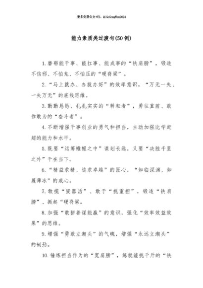 / 【七哥公文】2024年:(50例)能力素质类过渡句+更多免费公文+VX:QiGeGongWen2024