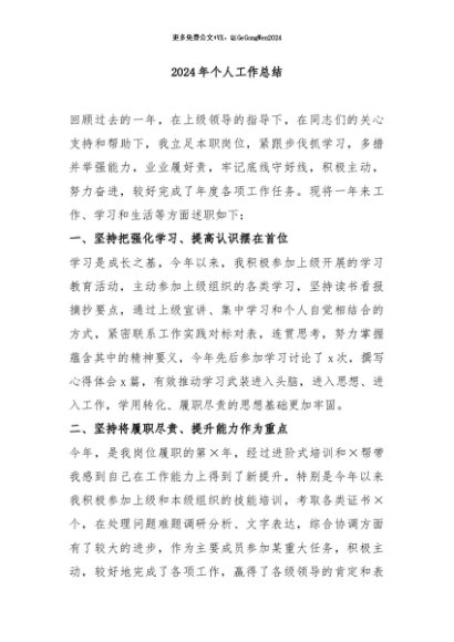 / 【七哥公文】2024年:2024年个人工作总结+更多免费公文+VX:QiGeGongWen2024