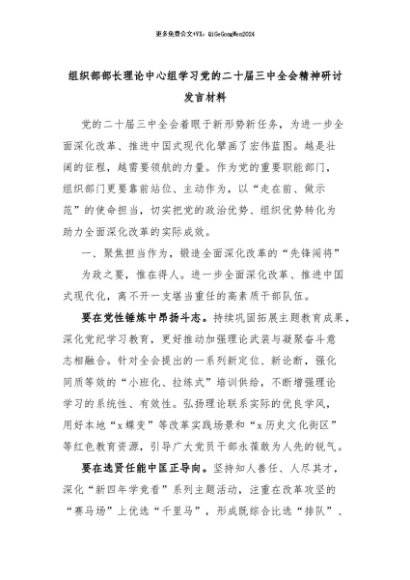 【七哥公文】2024年:组织部部长理论中心组学习党的二十届三中全会精神研讨发言材料 (1)+更多免费公文+VX:QiGeGongWen2024