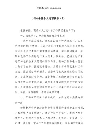 / 【七哥公文】2024年:2024年度个人述职报告(7)+更多免费公文+VX:QiGeGongWen2024