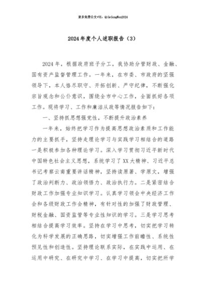 / 【七哥公文】2024年:2024年度个人述职报告(3)+更多免费公文+VX:QiGeGongWen2024