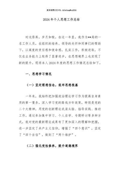 / 【七哥公文】2024年:2024年个人思想工作总结 (1)+更多免费公文+VX:QiGeGongWen2024
