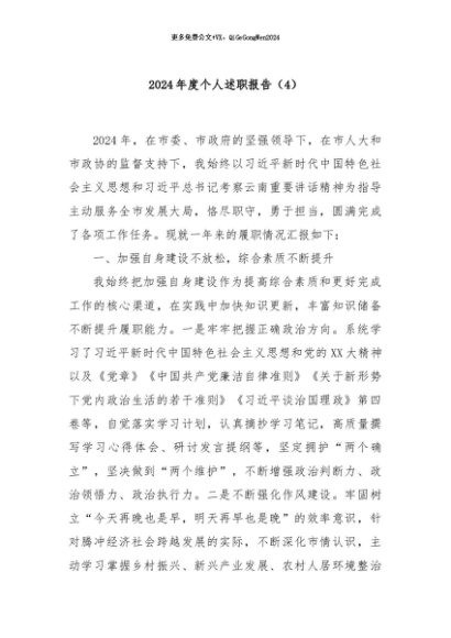 / 【七哥公文】2024年:2024年度个人述职报告(4)+更多免费公文+VX:QiGeGongWen2024
