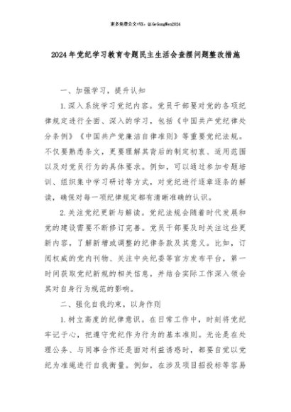 【七哥公文】2024年:2024年党纪学习教育专题民主生活会查摆问题整改措施+更多免费公文+VX:QiGeGongWen2024