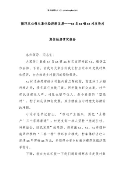 【七哥公文】2024年:循环农业催生集体经济新发展——xx县xx镇xx村发展村集体经济情况报告+更多免费公文+VX:QiGeGongWen2024