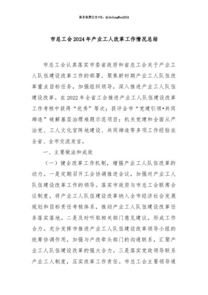 / 【七哥公文】2024年:市总工会2024年产业工人改革工作情况总结+更多免费公文+VX:QiGeGongWen2024