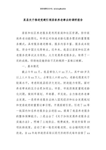 / 【七哥公文】2024年:某县关于推进党建引领居家养老事业的调研报告+更多免费公文+VX:QiGeGongWen2024