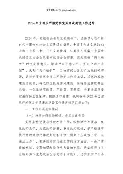 / 【七哥公文】2024年:2024年全面从严治党和党风廉政建设工作总结+更多免费公文+VX:QiGeGongWen2024