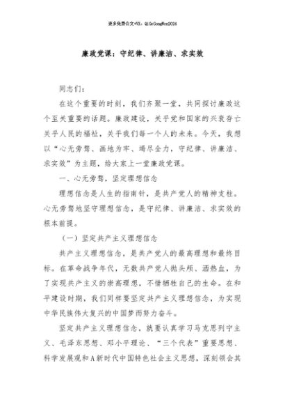 / 【七哥公文】2024年:廉政党课:守纪律、讲廉洁、求实效+更多免费公文+VX:QiGeGongWen2024