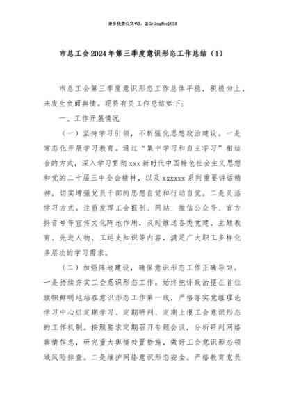 / 【七哥公文】2024年:市总工会2024年第三季度意识形态工作总结(1)+更多免费公文+VX:QiGeGongWen2024