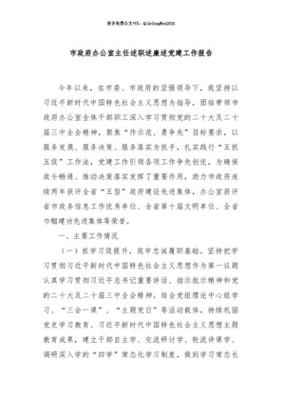 / 【七哥公文】2024年:市政府办公室主任述职述廉述党建工作报告 (1)+更多免费公文+VX:QiGeGongWen2024