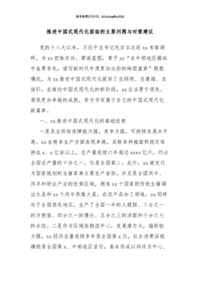 / 【七哥公文】2024年:推进中国式现代化面临的主要问题与对策建议+更多免费公文+VX:QiGeGongWen2024