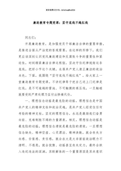 / 【七哥公文】2024年:廉政教育专题党课:坚守底线不越红线+更多免费公文+VX:QiGeGongWen2024