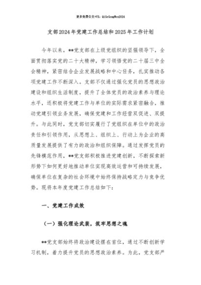 / 【七哥公文】2024年:支部2024年党建工作总结和2025年工作计划+更多免费公文+VX:QiGeGongWen2024